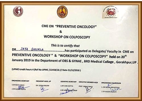 • Attended workshop on Colposcopy and CME on preventive oncology in 2018.