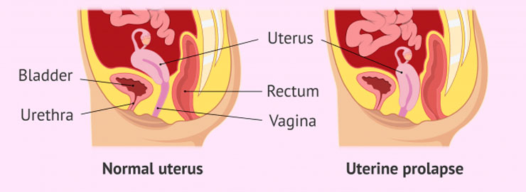 Uterine prolapse occurs when pelvic floor muscles and ligaments stretch and weaken until they no longer provide enough support for the uterus. As a result, the uterus slips down into or protrudes out of the vagina.